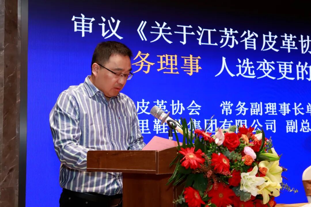 会议审议通过了协会常务副理事长单位、江苏万里鞋业集团有限公司副总经理陈煜先生宣读的《江苏省皮革协会七届理事会常务理事、理事人选变更情况说明》议案。