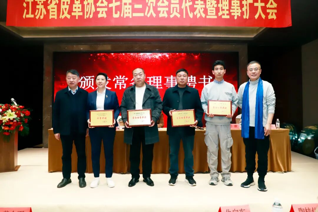 扬州大学广陵学院党委书记孟益宏受聘担任江苏省皮革协会七届理事会常务副理事长;江苏企商投资管理有限公司CEO惠文影受聘担任江苏省皮革协会七届理事会副理事长。