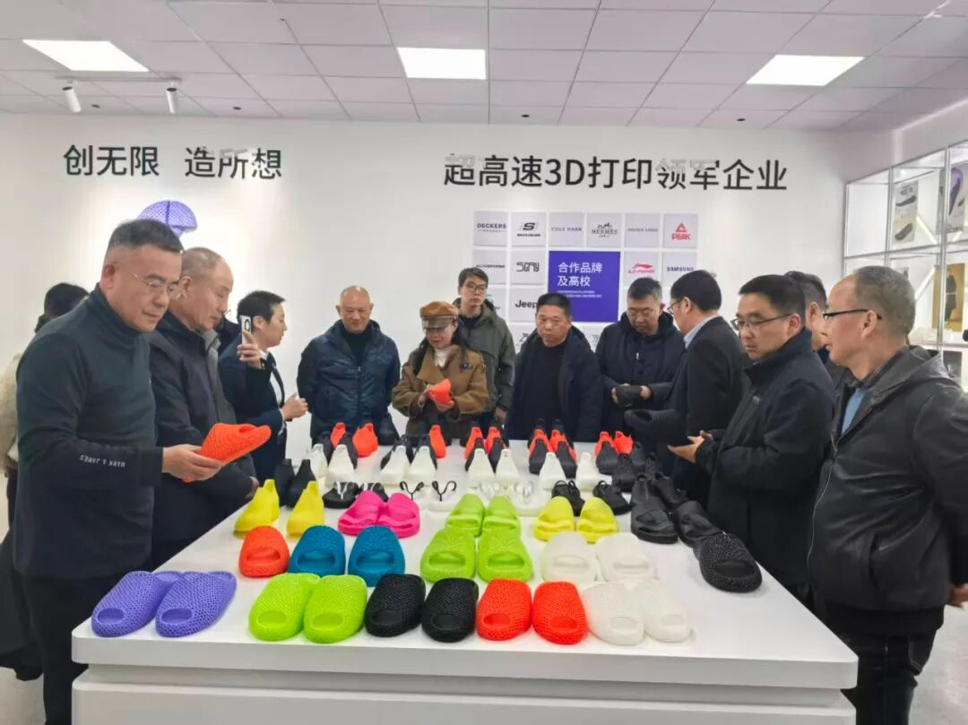 12月12日下午,参会代表共同参观了拥有200台套智能打印设备的“博理•星奇尚”3D打印鞋扬州生产基地。