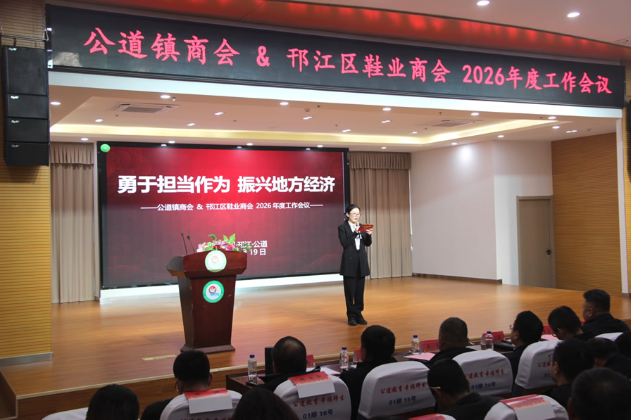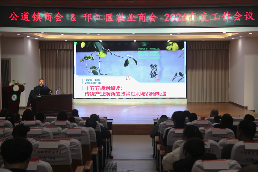 春风送暖,万物竞发。3月19日,邗江区鞋业商会与公道镇商会联合召开2026年度工作会议,以“勇于担当作为,振兴地方经济”为主题,凝聚发展共识、谋划未来路径。本次会议既是年度工作总结会,更是动员部署会,为邗江鞋业产业与公道镇实体经济高质量发展注入强劲动力。